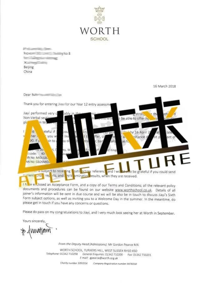 錄取院校:Worth School