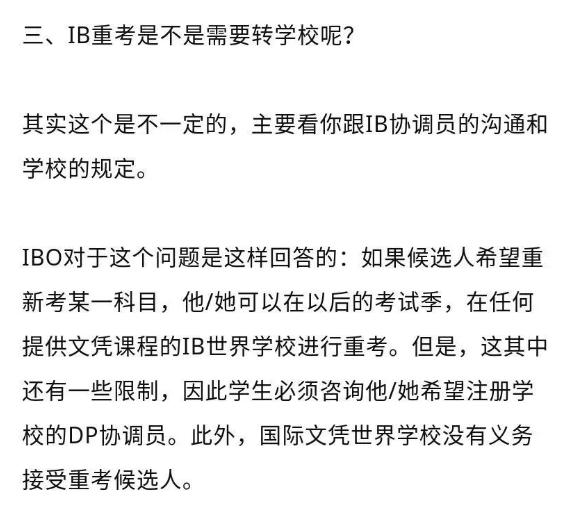 IB重考無需解釋太多,如果你對成績不滿意,或者成績不能符合拿到文憑的要求,那么就可能考慮重考。