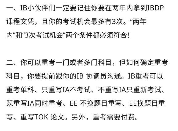每位IB學生都需要在兩年內拿到自己的IBDP課程文憑,每位學生有2次重考機會,也就是說IB學生最多可以參加3次考試。(重考并非無限次的哦~)