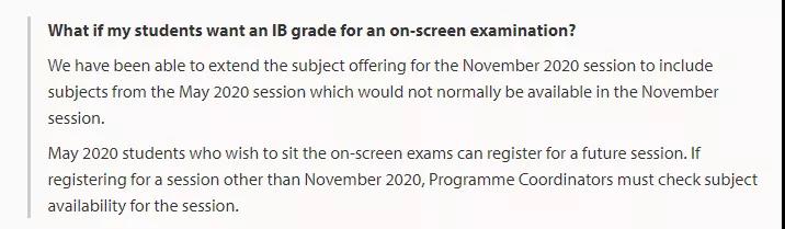 IBO建議學(xué)生可參加其他時(shí)間段的大考??蓞⒓?020年11月大考,因?yàn)镮BO已經(jīng)添加了一些新的考試科目,參加2020年11月的大考之外的其他時(shí)間段的考試的,小伙伴們需要提前查看是否提供對(duì)應(yīng)科目的考試。