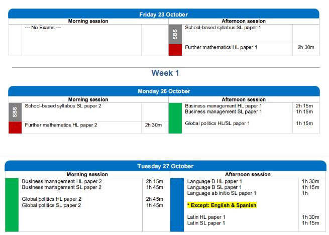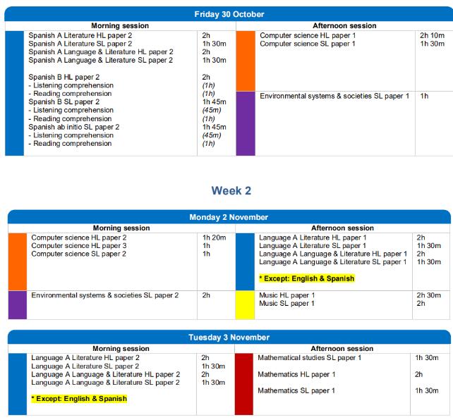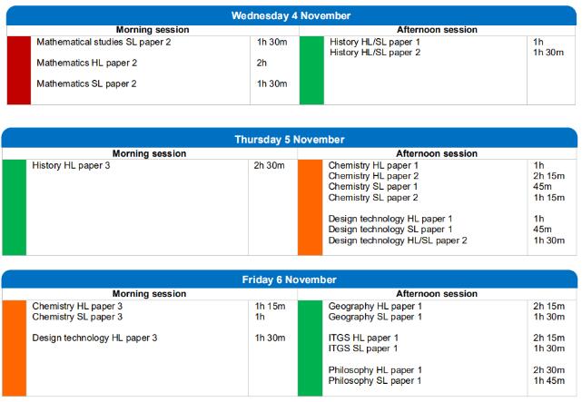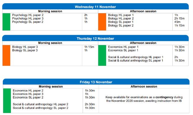 2020年11月考試將從10月23日開始,11月13日結束。以下是IBO官網目前公布的11月考試時間安排,隨著疫情發(fā)展情況,后續(xù)可能還會有所調整:
