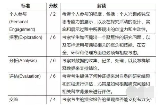 這里可以看出EE的學術水準比IA高得多。“IA的評分要求對于SL和HL而言是完全一致的”,也就意味著對HL考生而言,IA的評分要求不會有拔高。至于EE,雖然沒有明確有求,但由于其較高的學術水準,在挑選學科時一定要慎重。