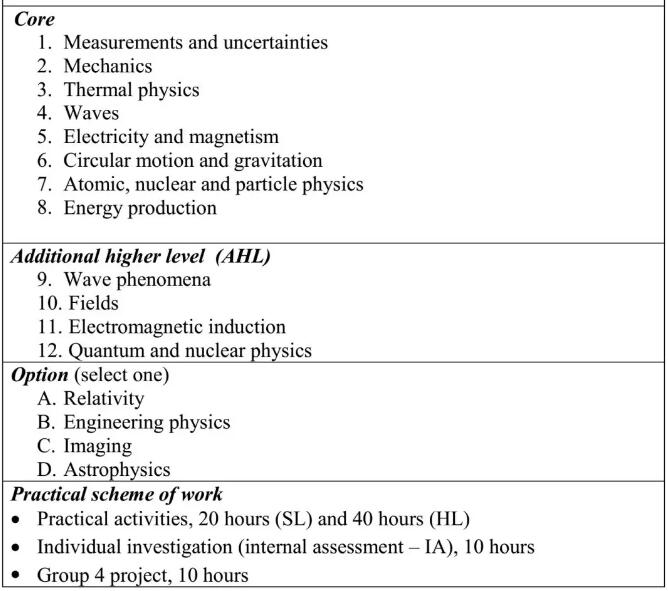 SL物理總學時150小時,包含20小時物理實驗加10小時跨學科項目;