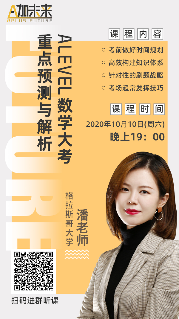 如果說你還是有無法突破的點,有無法捋清的思路,對復習無從下手,成績總是無法獲得突破... ...那就來A加未來的公益課堂吧,10月10日A加未來潘老師手把手交給你考場超長發揮技巧!干貨滿滿,真正做到“哪里不會點那里”!