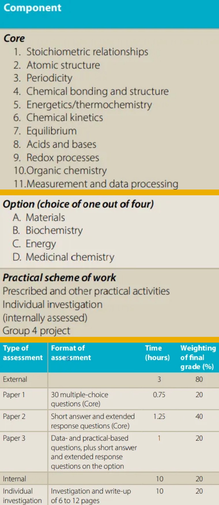 IB化學HL考綱與考試形式